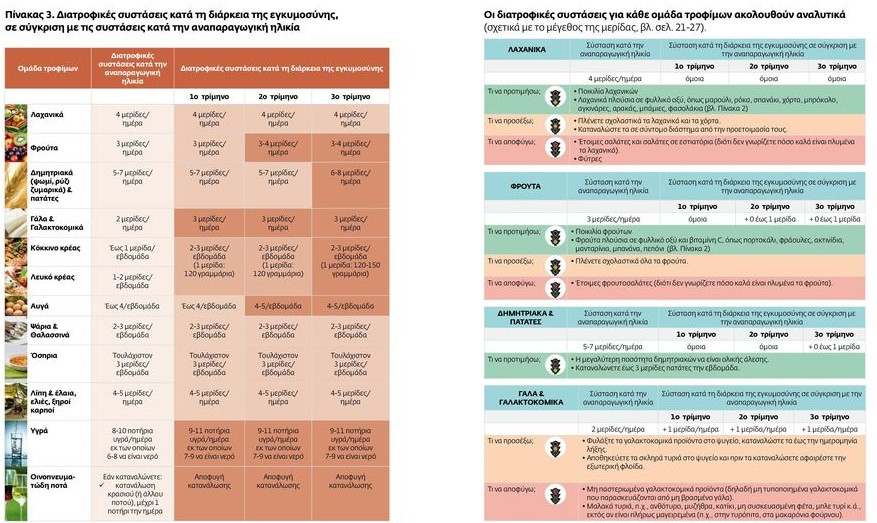 Διατροφικές συστάσεις κατά τη διάρκεια της εγκυμοσύνης, σε σύγκριση με τις συστάσεις κατά την αναπαραγωγική ηλικία,